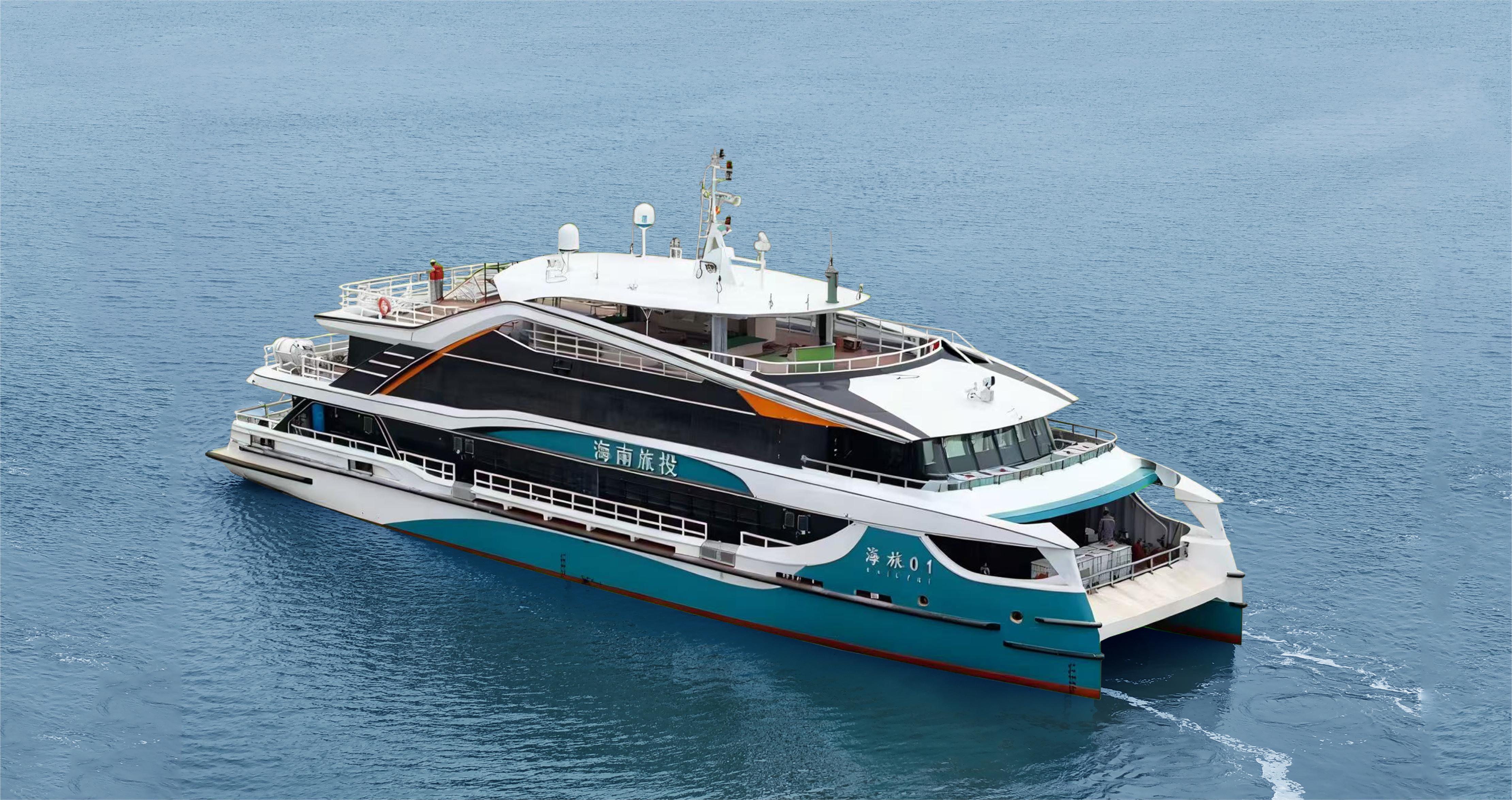 Recently, the 40-meter double-hulled steel tourist vessel built by Aulong for Hainan Tourism Investment successfully completed its navigation test. This vessel is the first tourist vessel of Hainan Tourism Investment and will further enhance the quality of water-based tourism in Haikou Bay, promoting the development of coastal tourism in Haikou.